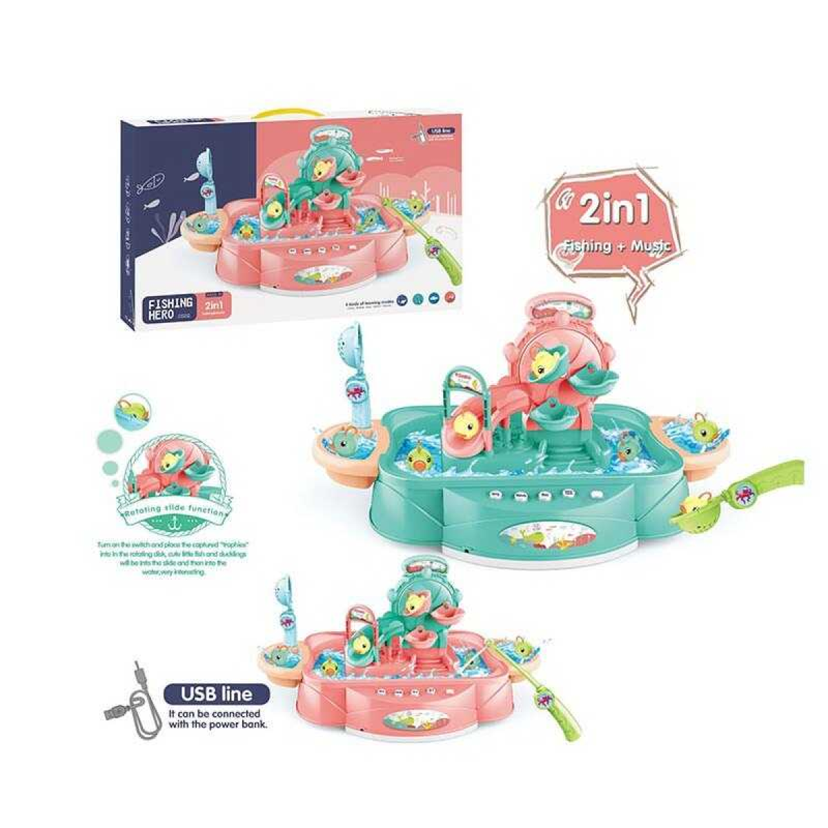 Риболовля 156-4 C (18/2) 2 кольори, звук, мелодії, історії, озвучування англійською, 6 рибок, вудка, сачок, в коробці