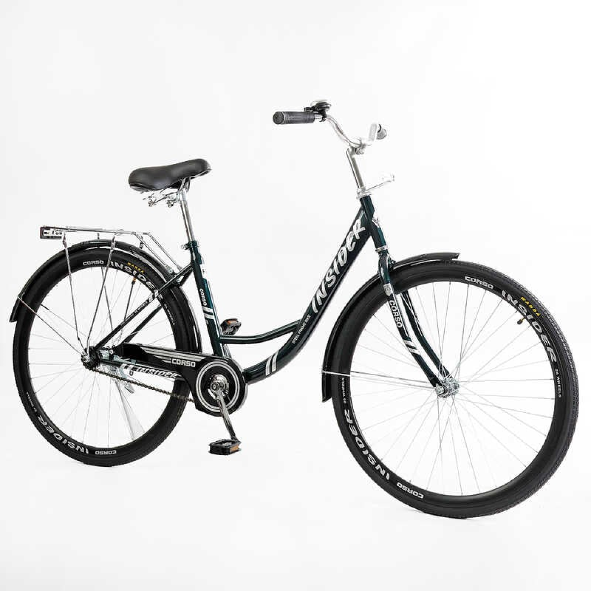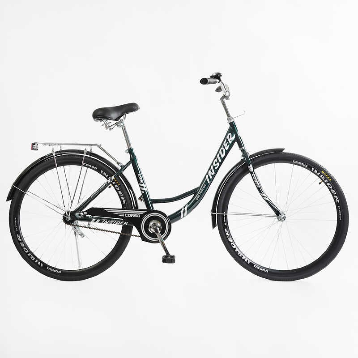 Велосипед міський Corso «Insider» 26`` SD-26108 (1) ТЕМНО-ЗЕЛЕНИЙ, одношвидкісний, сталева рама 16.5``, багажник