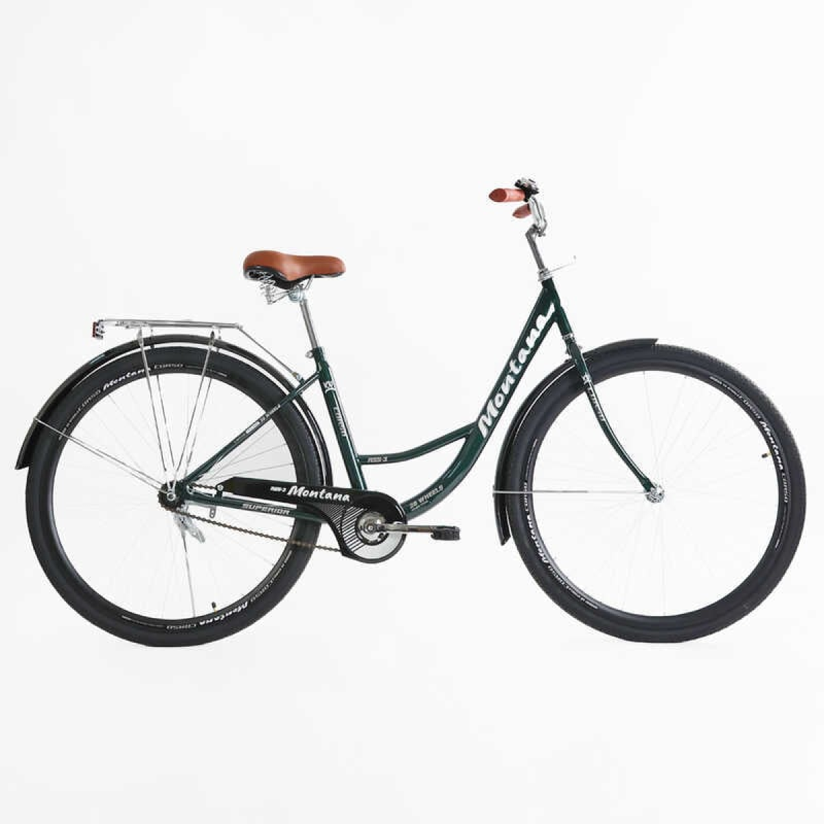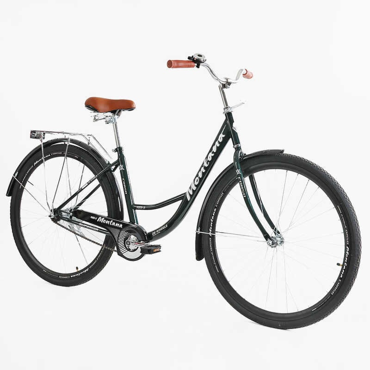 Велосипед міський Corso «Montana» 28`` MT-28202 (1) ТЕМНО-ЗЕЛЕНИЙ, одношвидкісний, сталева рама 20``, багажник