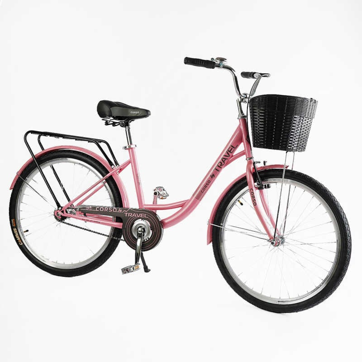 Велосипед міський Corso «TRAVEL» 26`` TL-26611 + КОШИК (1) одношвидкісний, сталева рама 16.5``, корзина, багажник