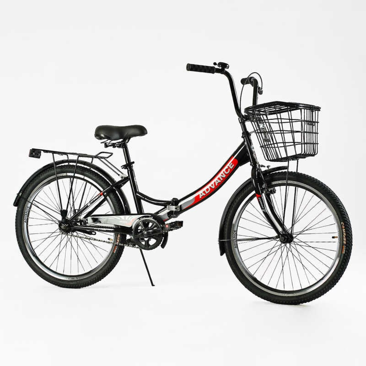 Велосипед складний Corso 24““ Advance AD-24400 (1) + КОШИК, одношвидкісний, складна сталева рама 14““, корзина