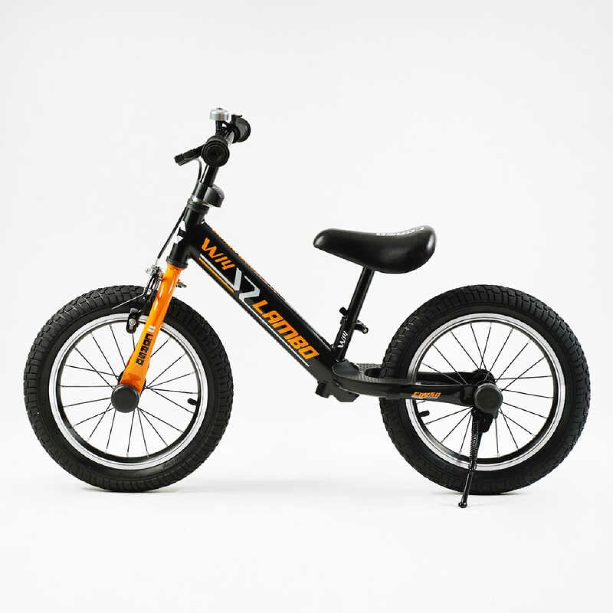 Велобіг “CORSO LAMBO“ LB-14084 (1) сталева рама, ручне гальмо, колеса надувні резинові 14’’, алюмінієві обода, підставка для ніг, підніжка, дзвоник