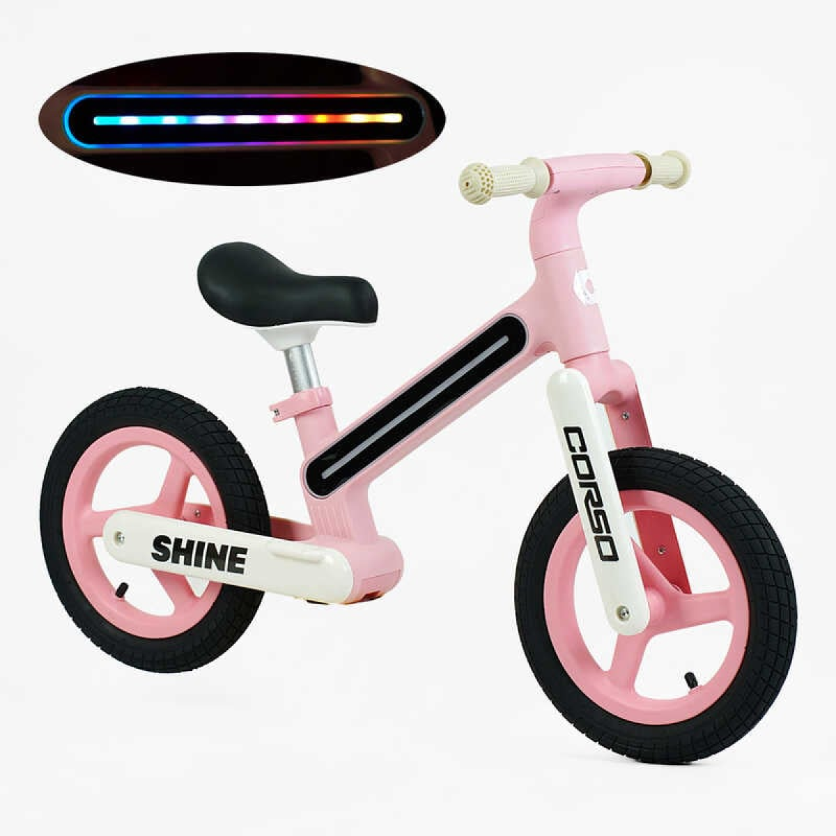 Велобіг «Corso Shine» JT-10059 (1) нейлонова рама зі світлом, нейлонова вилка, надувні колеса 12’’, в коробці