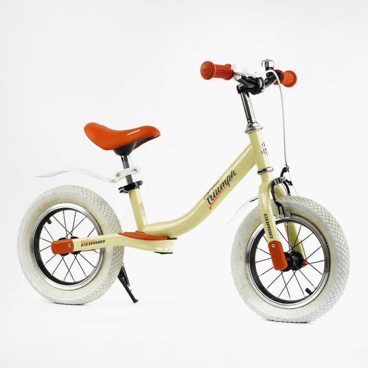 Велобіг Corso “Triumph“ 40441 (1) СКОЛИ НА РАМІ!! сталева рама, надувні колеса 12“, ручне гальмо, підніжка, крила, дзвіночок, в коробці