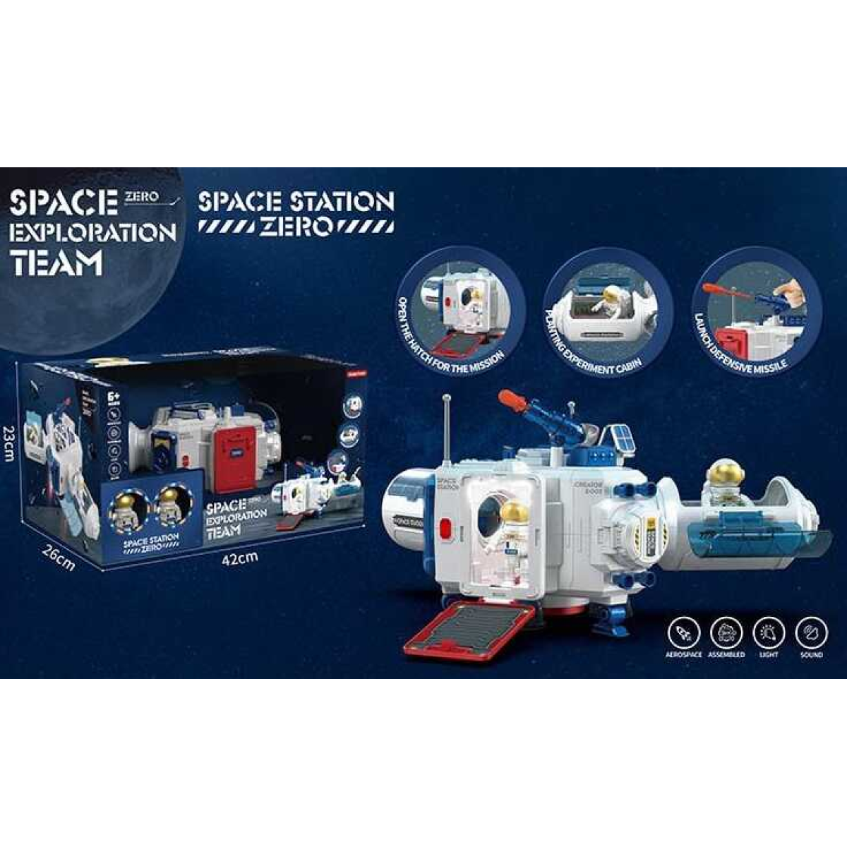 Космічний набір K 04 (12) “Космічна станція ZERO“, світло, звук, 2 космонавти, у коробці