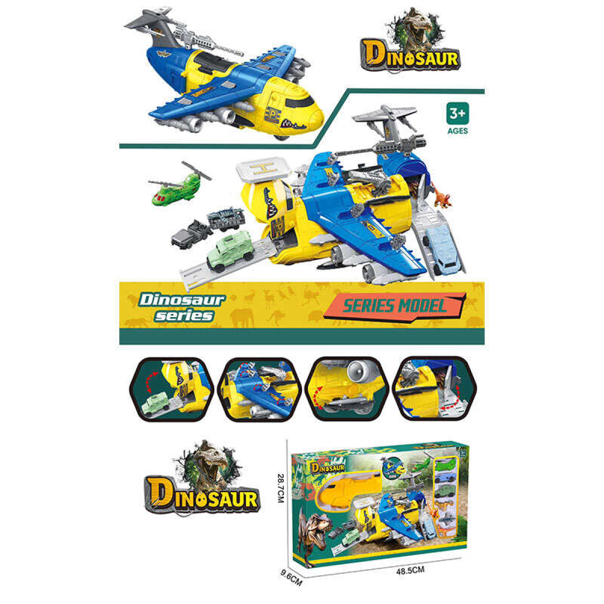 Літак SY 9965 (18) 3 фігурки динозаврів, 2 машинки, вертоліт, відсіки літака відчиняються, в коробці