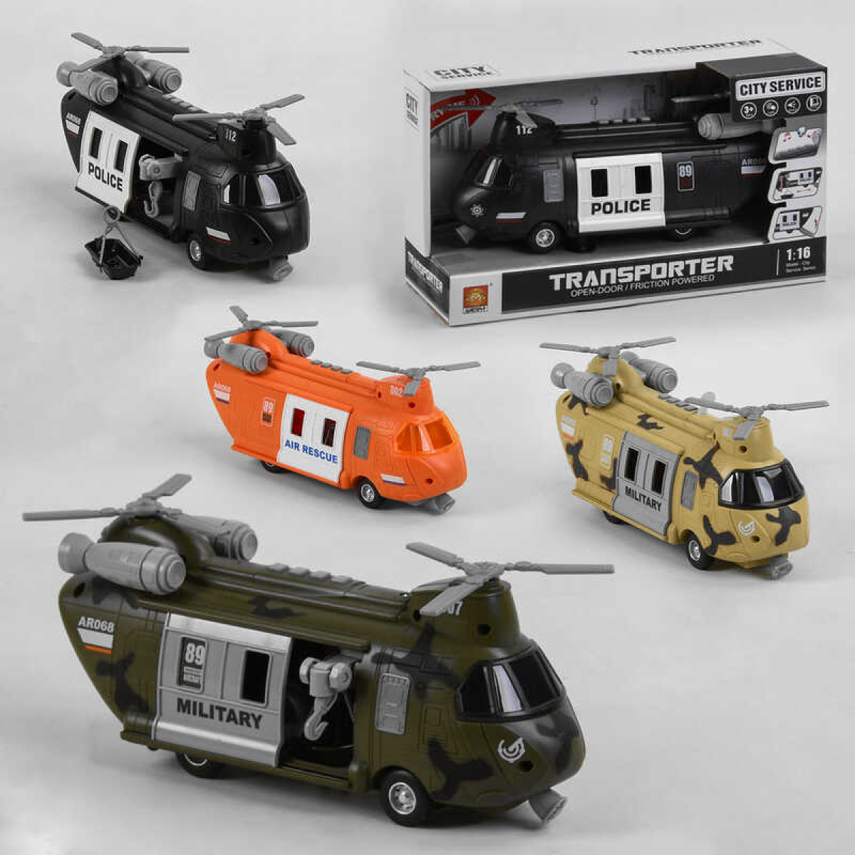 Вертоліт WY 640 A / B (24) “Службовий транспорт“, 4 види, інерція, відчиняються двері, шлюз, підсвічування салону, звук техніки, в коробці