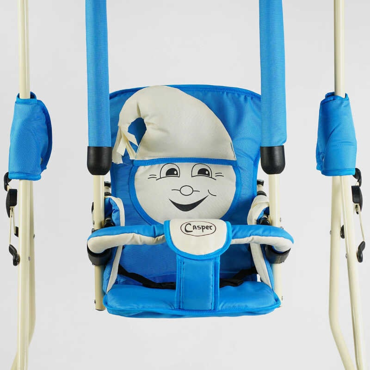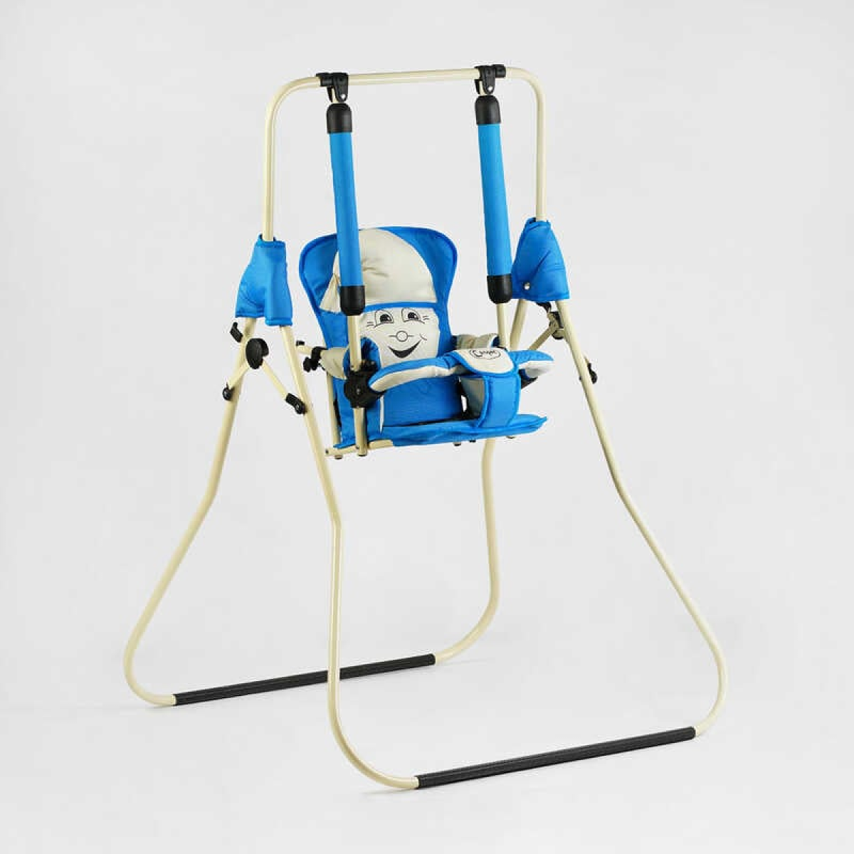 гр Гойдалка підлогова “Алінка“ 205317 (1) бежевий каркас, синя матерія, бежевий гномик, в пакеті