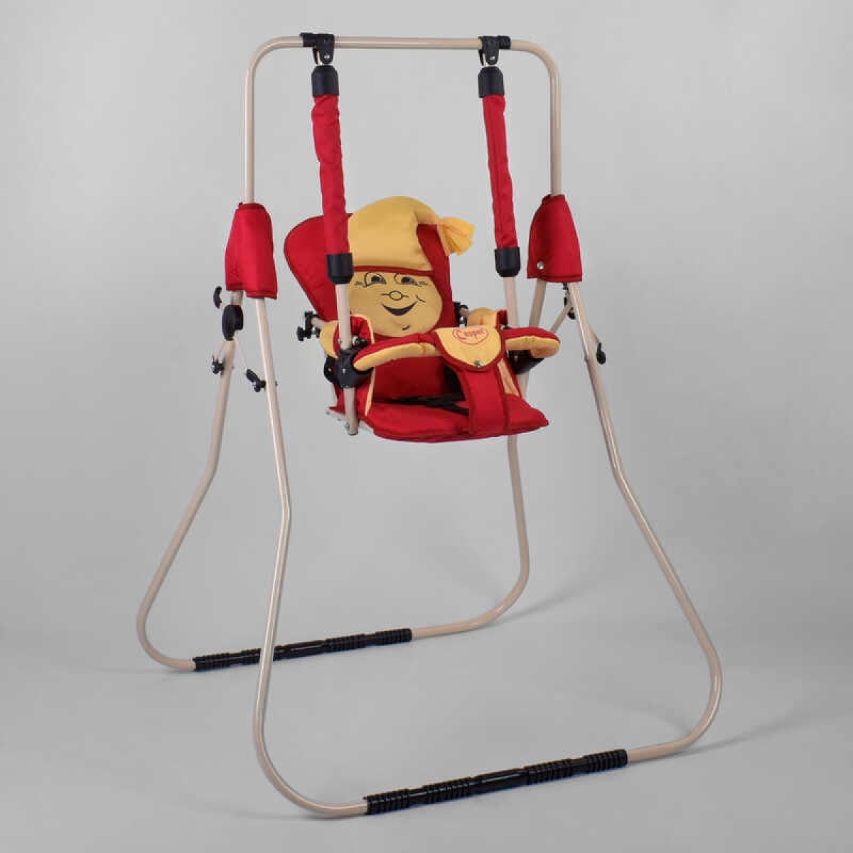 гр Гойдалки підлогова “Алінка“ 5362 (1) білий каркас, червона матерія, бежевий гномик