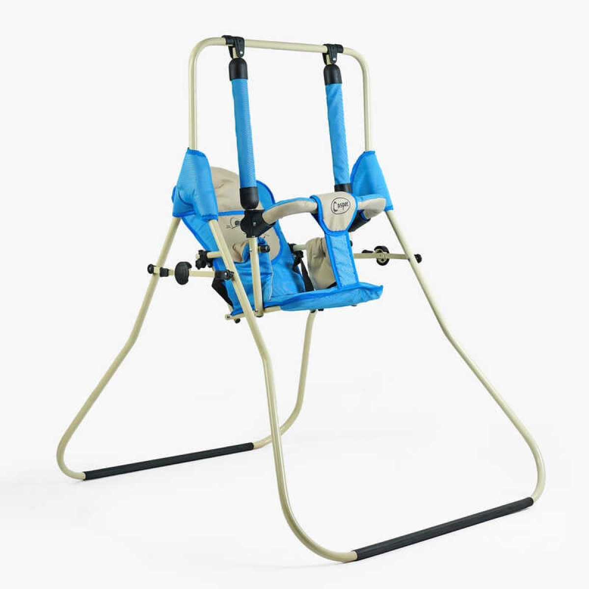 гр Гойдалка підлогова “Алінка“ 209155 (1) синій каркас, бежева матерія, бежевий гномик, в пакеті