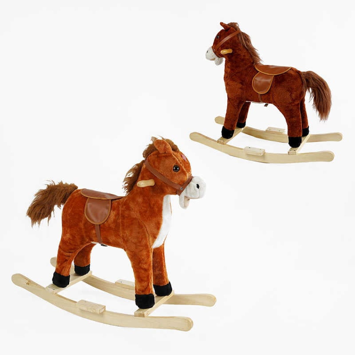 • Качалка-гойдалка музична B 38771 (8) 2 кольори, “Кінь”, 73х28х68 см, підсвічування, звуки, рухається хвіст, відкривається рот, в пакеті