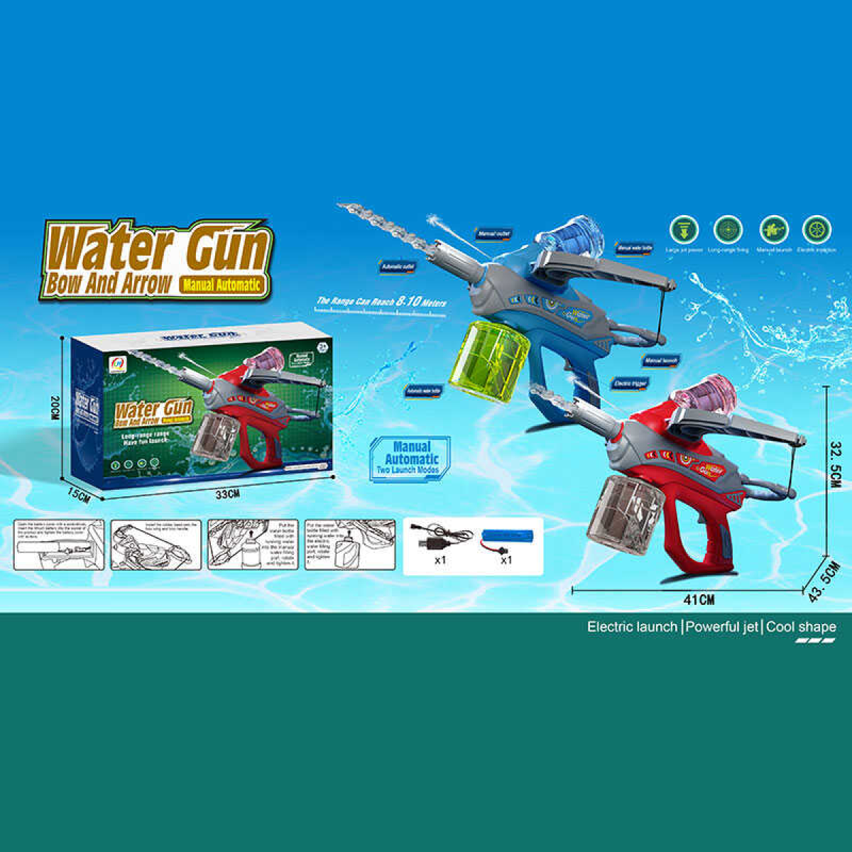 Водний автомат-арбалет 777-28 A (18) 2 кольори, 2 способи стрільби, 2 пляшки для води, акум. 3.7V, USB-кабель, наліпка, в коробці, ВИДАЄТЬСЯ ТІЛЬКИ МІКС ВИДІВ