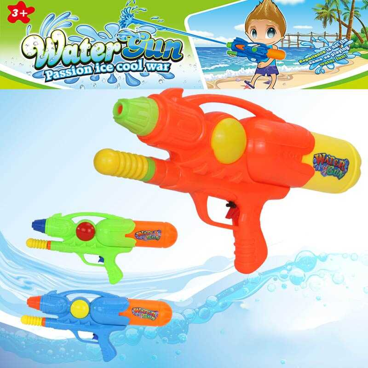 Водний пістолет G 38 (120/2) помповий механізм, знімний балон, довжина 37 см, в пакеті, ВИДАЄТЬСЯ МІКС ВИДІВ
