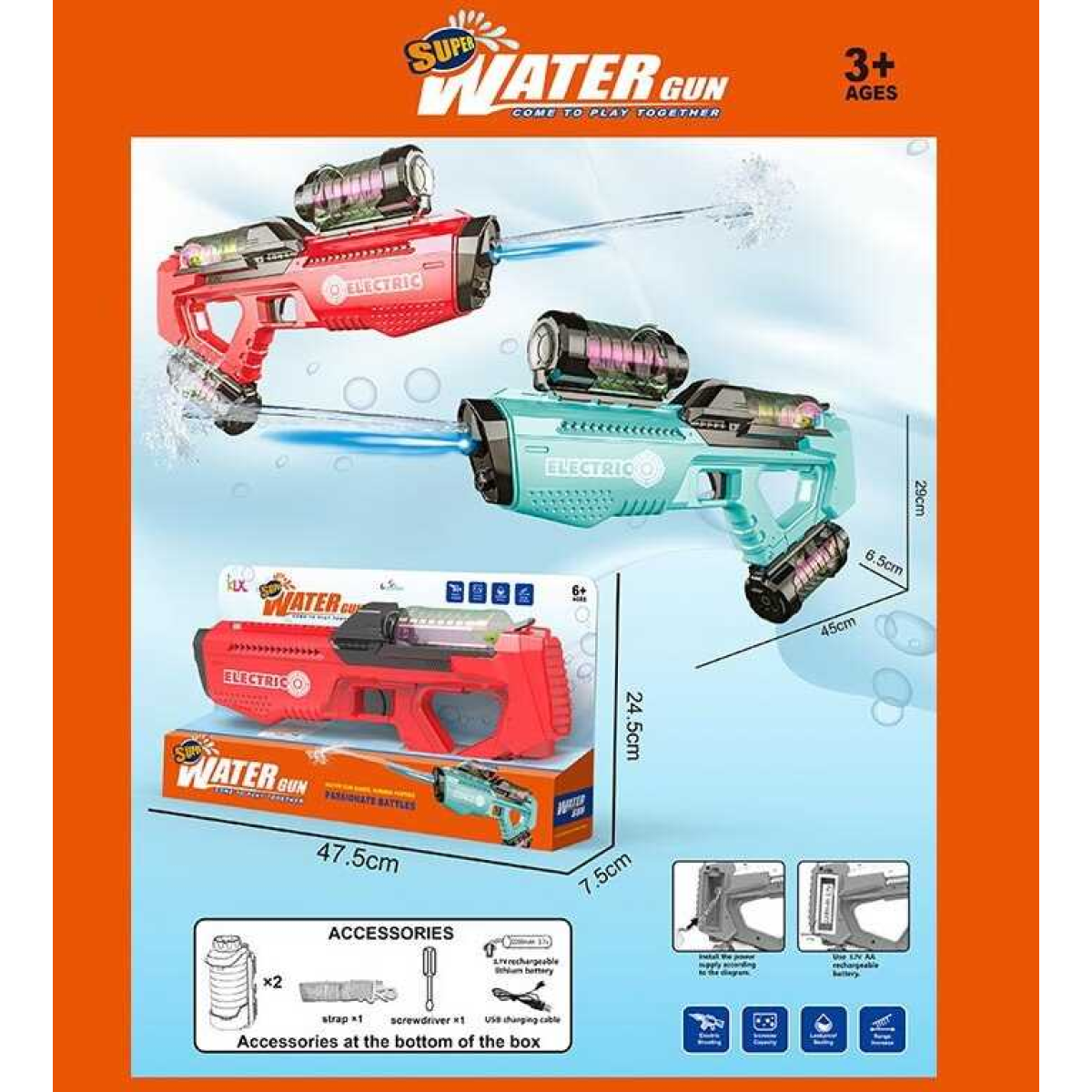 Водяний автомат 456-102 A Штрих = 90236 (18) 2 види, акумулятор 3.7 V, підсвітка, звук, викрутка, лямка на плече, в коробці, ВИДАЄТЬСЯ ТІЛЬКИ МІКС ВИДІВ