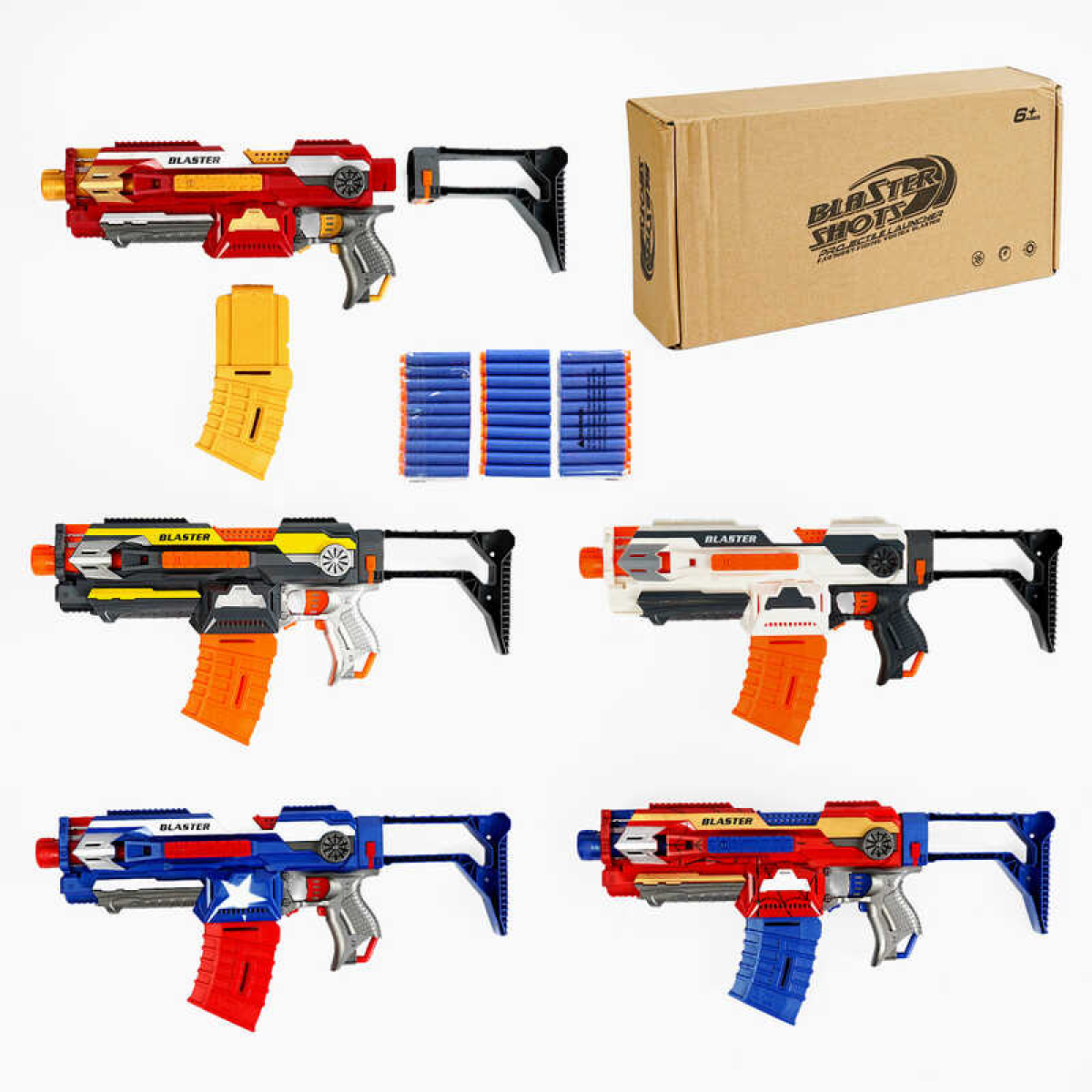 • Автомат SB 524 (18)  5 кольорів, знімний магазин і приклад, складна мушка, 30 набоїв на присосці, у коробці, ВИДАЄТЬСЯ ТІЛЬКИ МІКС ВИДІВ