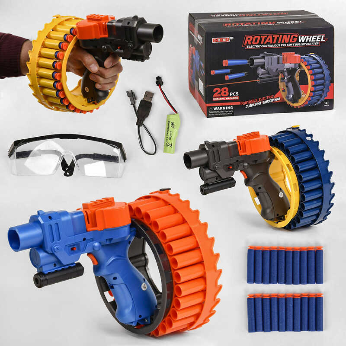 Пістолет KB 113 /113-1/113-2 (8) 3 кольори, акумулятор 3.7V, 30 м“якиж патронів на присосці, знімний лазер, захисні окуляри, в коробці, МІКС ВИДІВ