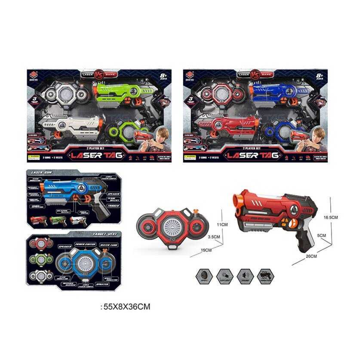 • Пістолет з мішенню 869-24 (12) 2 види, 2 бластери, 2 мішені, підсвічування, вібрація, звук, парогенератори, ремені, в коробці