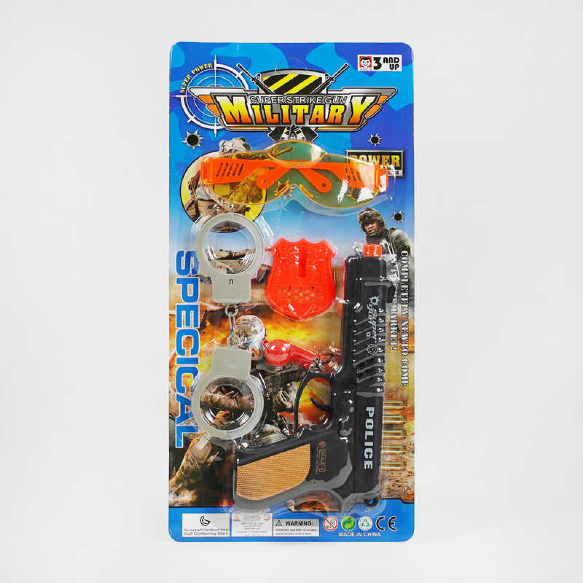 Поліцейський набір 676-4 (168/2) пістолет з тріскачкою, наручники, жетон, окуляри, свисток, на листі