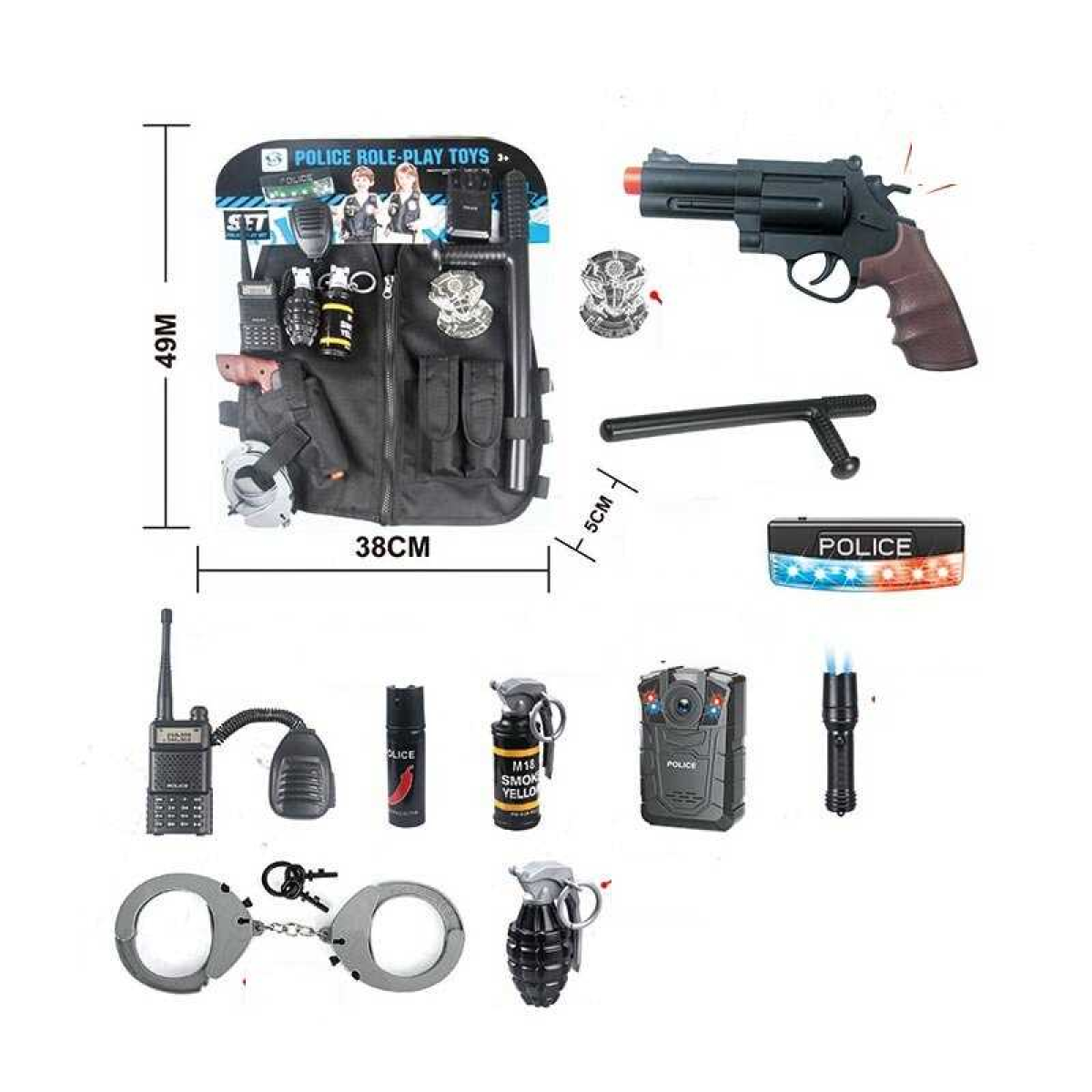 Поліцейський набір HSY 201 (12) 12 елементів, звук, підсвічування, жилет, ліхтарик, рація, камера, пістолет, у пакеті