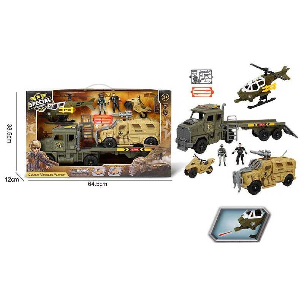 Набір військової техніки G 3109-43 (9) трейлер, гелікоптер, машина, скутер, намет, 2 фігурки військових, аксесуари, в коробці