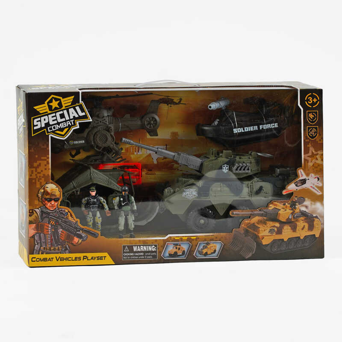 Набір військової техніки G 3109-59 (12) гелікоптер, танк, моторний човен з запускачем снарядів, 2 фігурки військових, рухомі елементи, в коробці