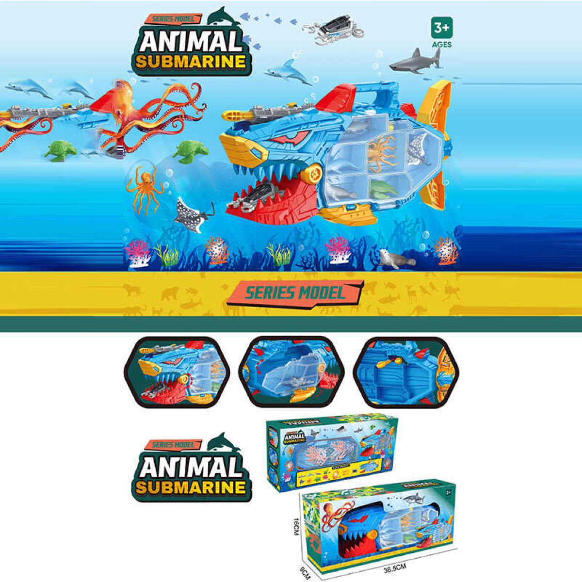 Підводний човен SY 9948 (24) “Акула”, 6 фігурок тварин, декорації, 2 снаряди, механічний запускач, рухомі елементи, в коробці