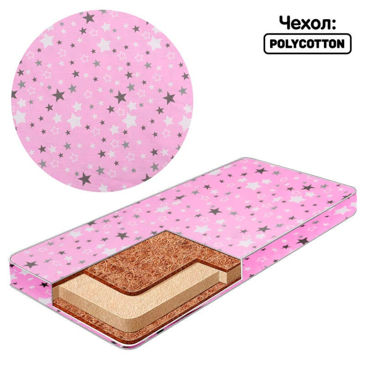 гр Матрац кокос - поролон - кокос - “Зірки сіро-білі“ 6239 - колір рожевий
