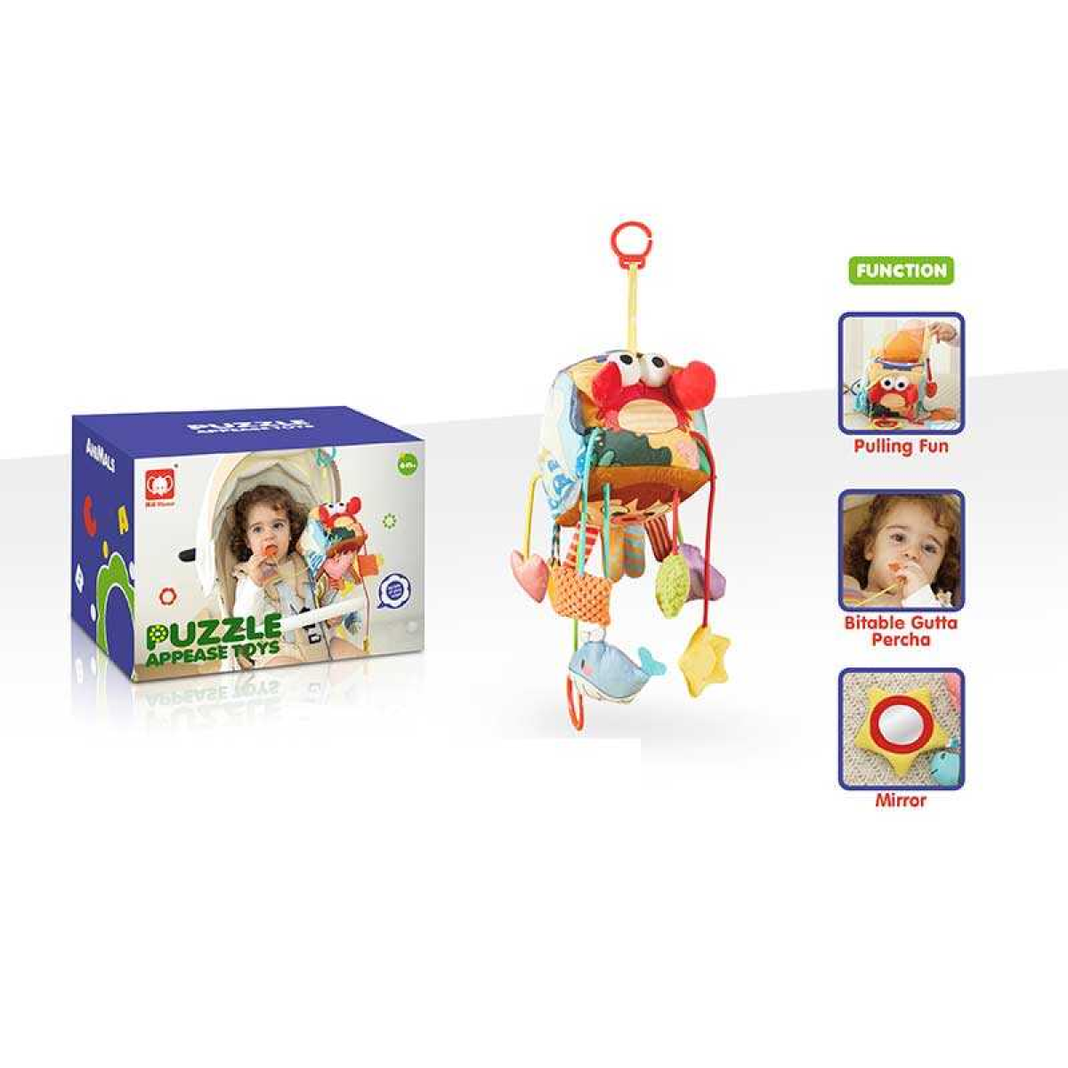 Брязкальце 20690 (36) 2 види, м“який куб, мотузки для перетягування, прорізувач, шелесткі елементи, пискавка, кільце-тримач, в коробці