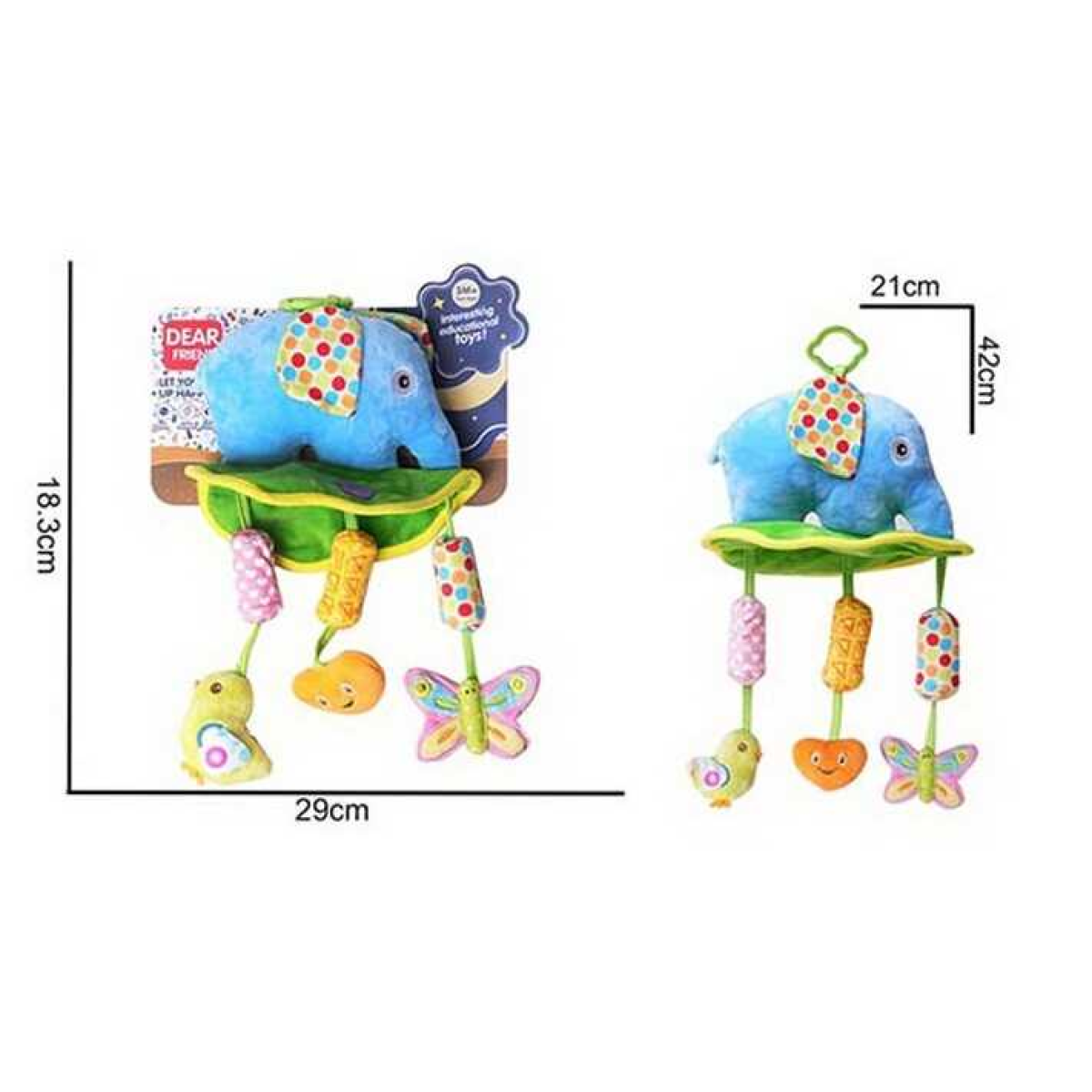 Брязкальце 688 M41 (96) “Слоник”, текстильне, кріплення для підвішування, пискавка, шелесткі елементи, мелодія вітру, в пакеті