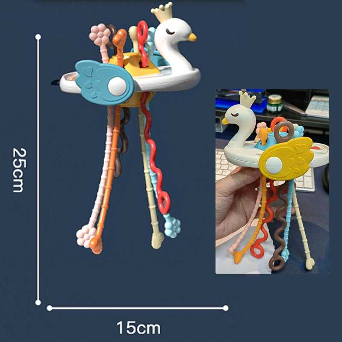 Брязкальце LL 002 B/Y (60) “Лебідь”, пальчикова гра, Pop it, гумові шнурочки, прорізувач, тріскачка, у пакеті