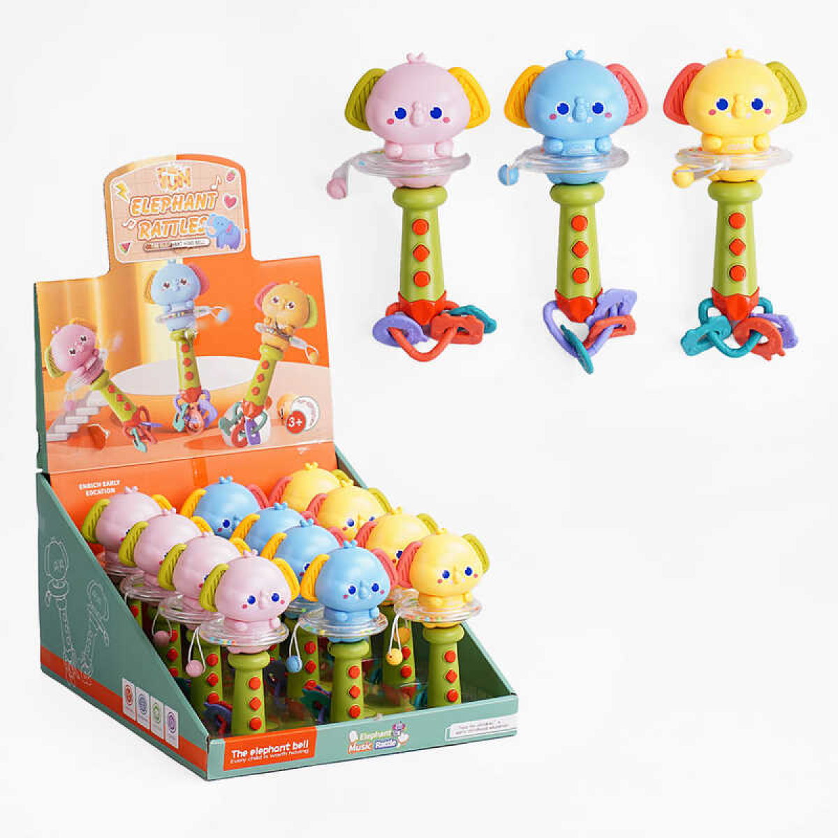 Брязкальце M 611 (12) ЦІНА ЗА 12 ШТУК В БЛОЦІ, “Слоненя“, мелодії, англійські слова, звуки тварин, музичні інструменти, прорізувач