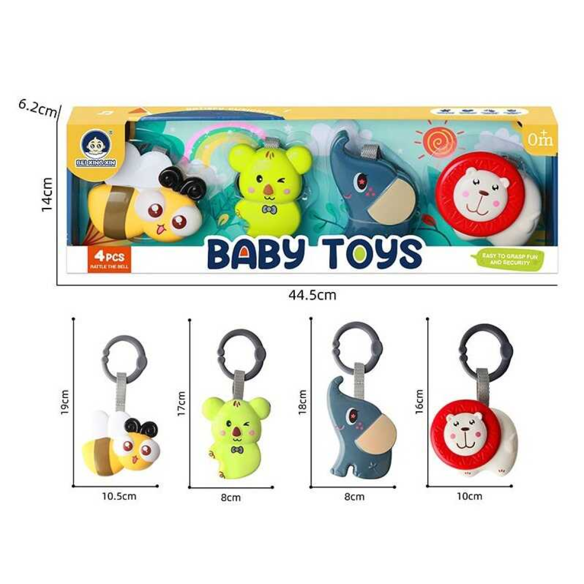 Набір брязкалець 977-1 (60/2) 4 штуки, рухливі елементи, можна підвісити, в коробці