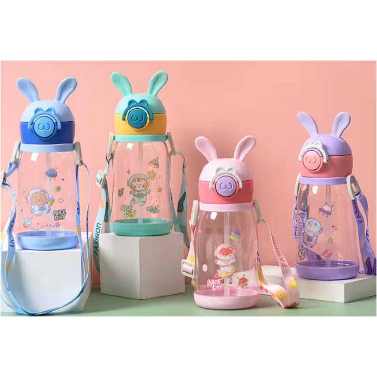Пляшка для води C 59513 (80) 4 кольори, 500 мл, пластикова, трубочка, ремінець, в пакеті, ВИДАЄТЬСЯ ТІЛЬКИ МІКС ВИДІВ