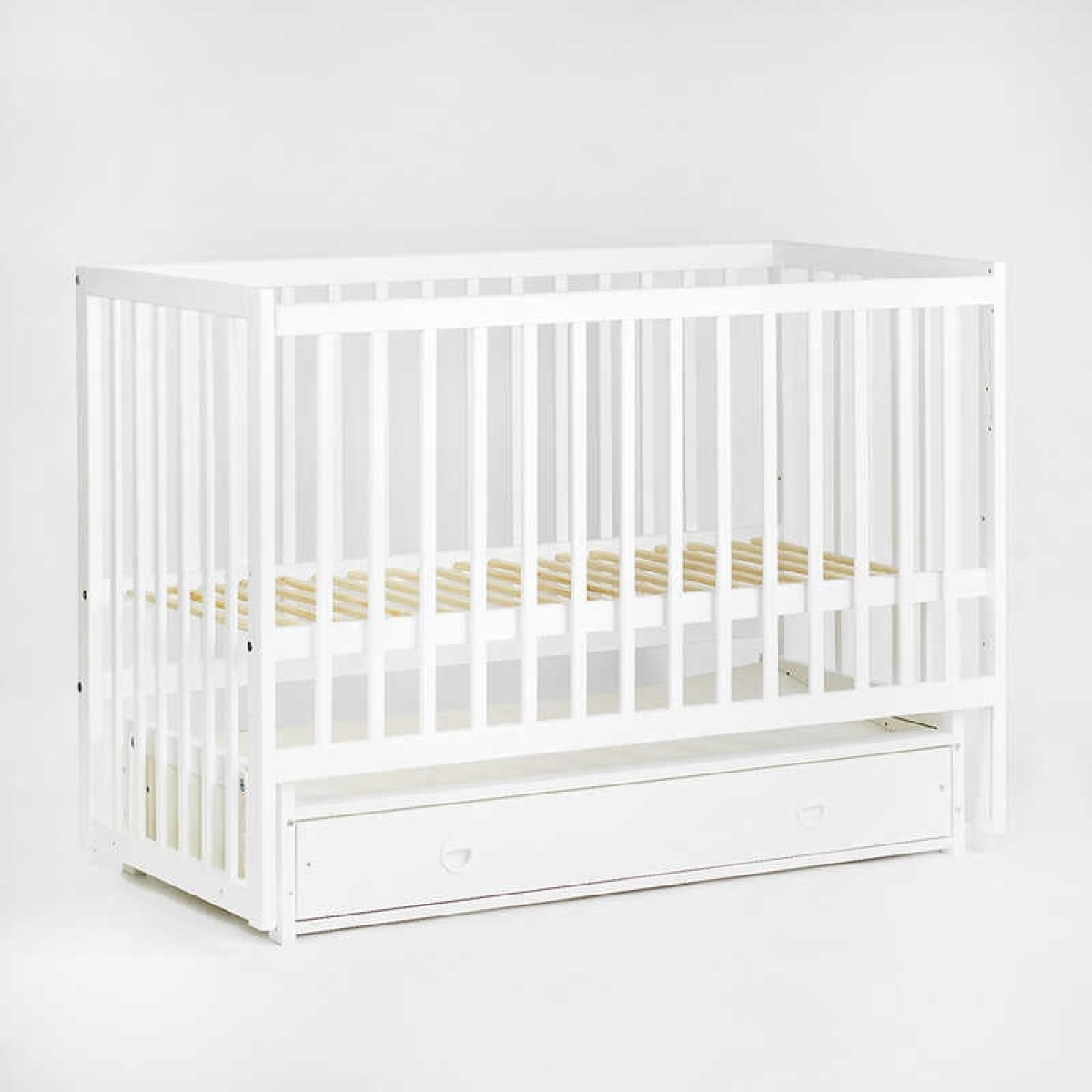 гр Ліжечко дитяче “Софія“ - шарнір-підшипник+ящик з опускною боковиною (Білий, біла паличка)