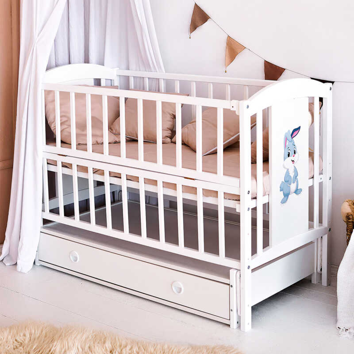 гр Ліжечко дитяче ЛІЛІ “Зайчик“ (1) шарнір-підшипник з відкидною боковиною+шухляда, (білий)