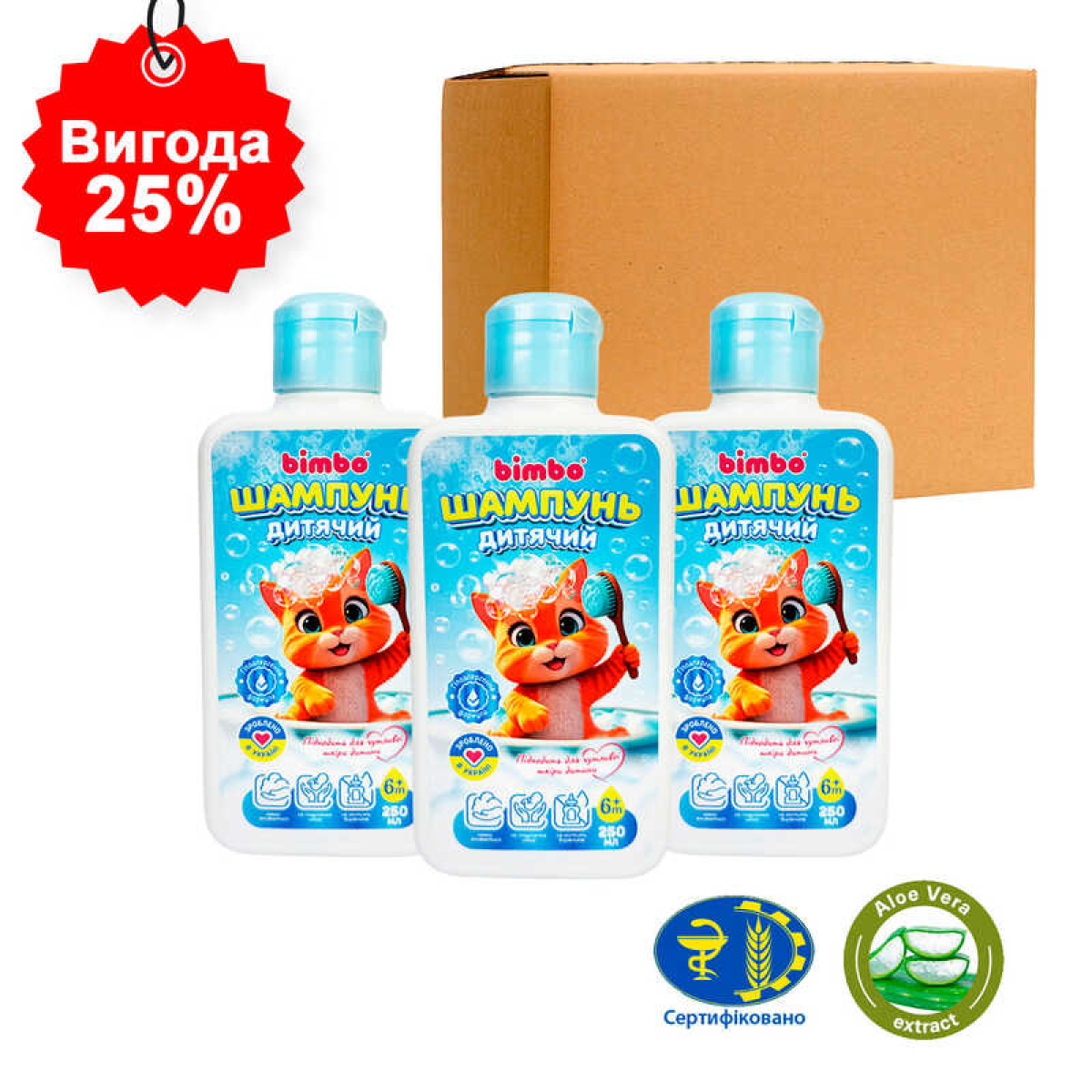 гр Шампунь дитячий 58894 (1) ЦІНА ЗА 10 ШТУК “Bimbo“, 250 мл, гіпоалергенний, не містить барвників, в коробці