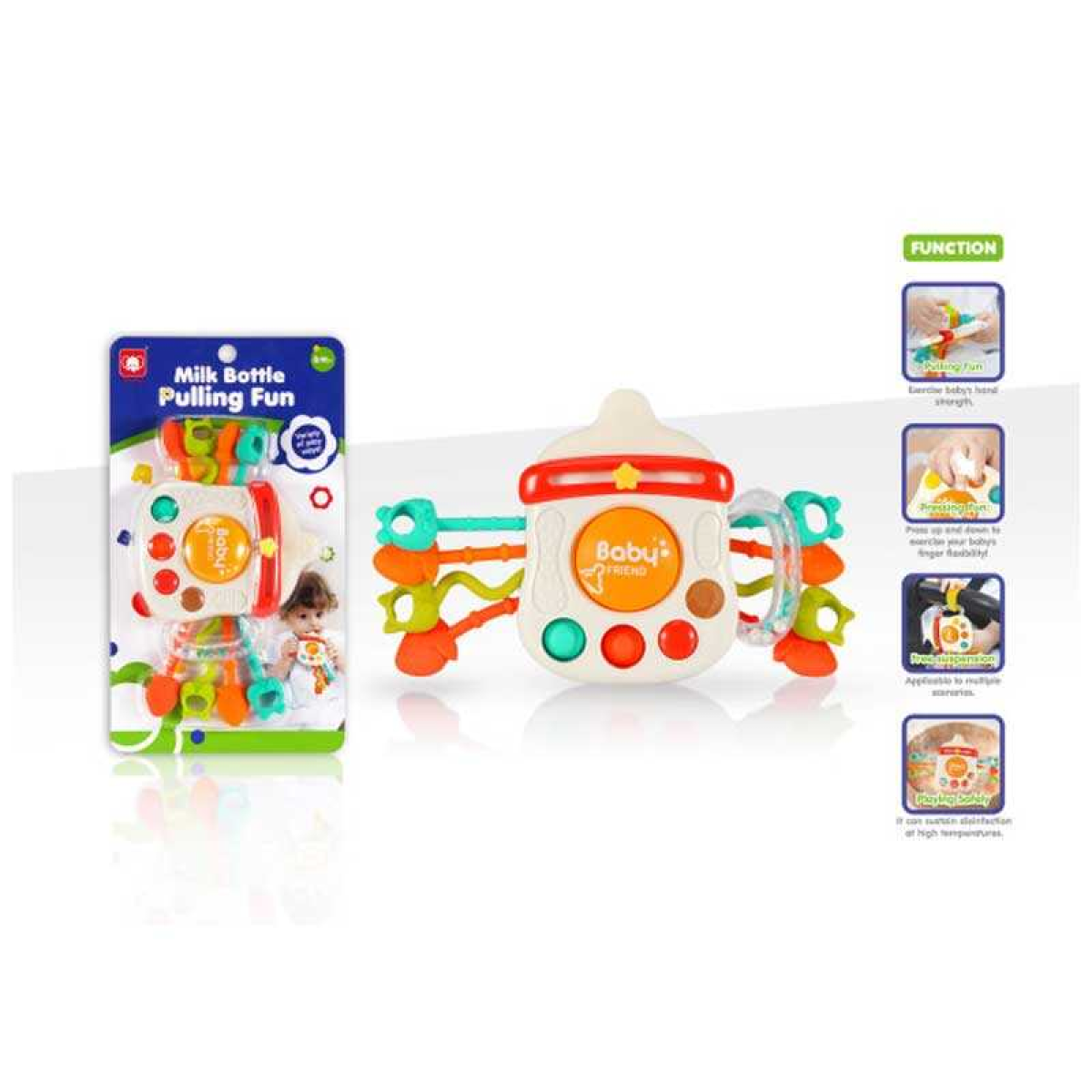 Брязкальце 20686 (120) “Пляшечка”, прорізувач, гумові елементи для перетягування, пальчикова гра, поп-іт, в коробці