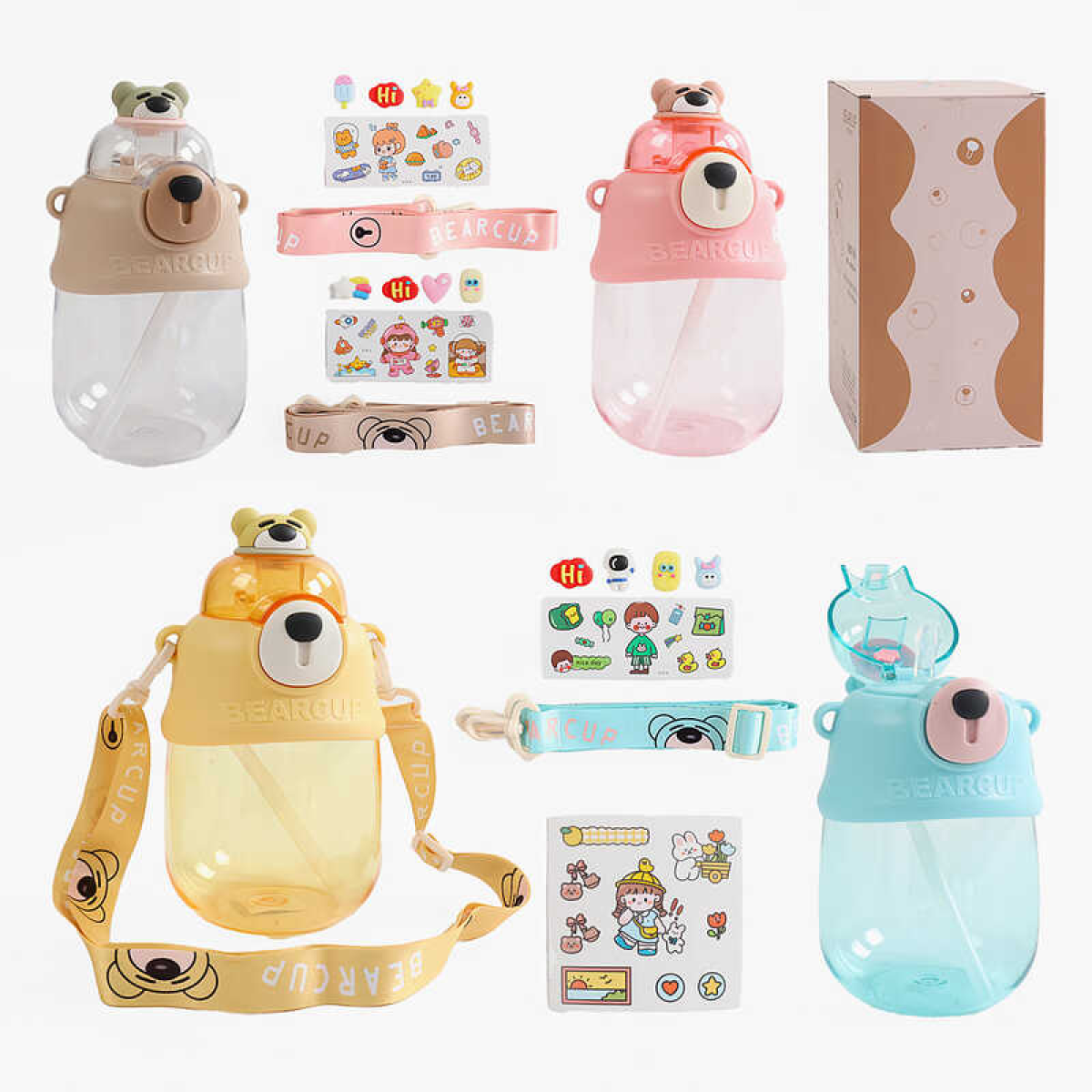 Пляшка для води C 69363 (40) 900 мл, пластикова, наліпки, трубочка, ремінець, пластикова застібка, в коробці, ВИДАЄТЬСЯ ТІЛЬКИ МІКС ВИДІВ