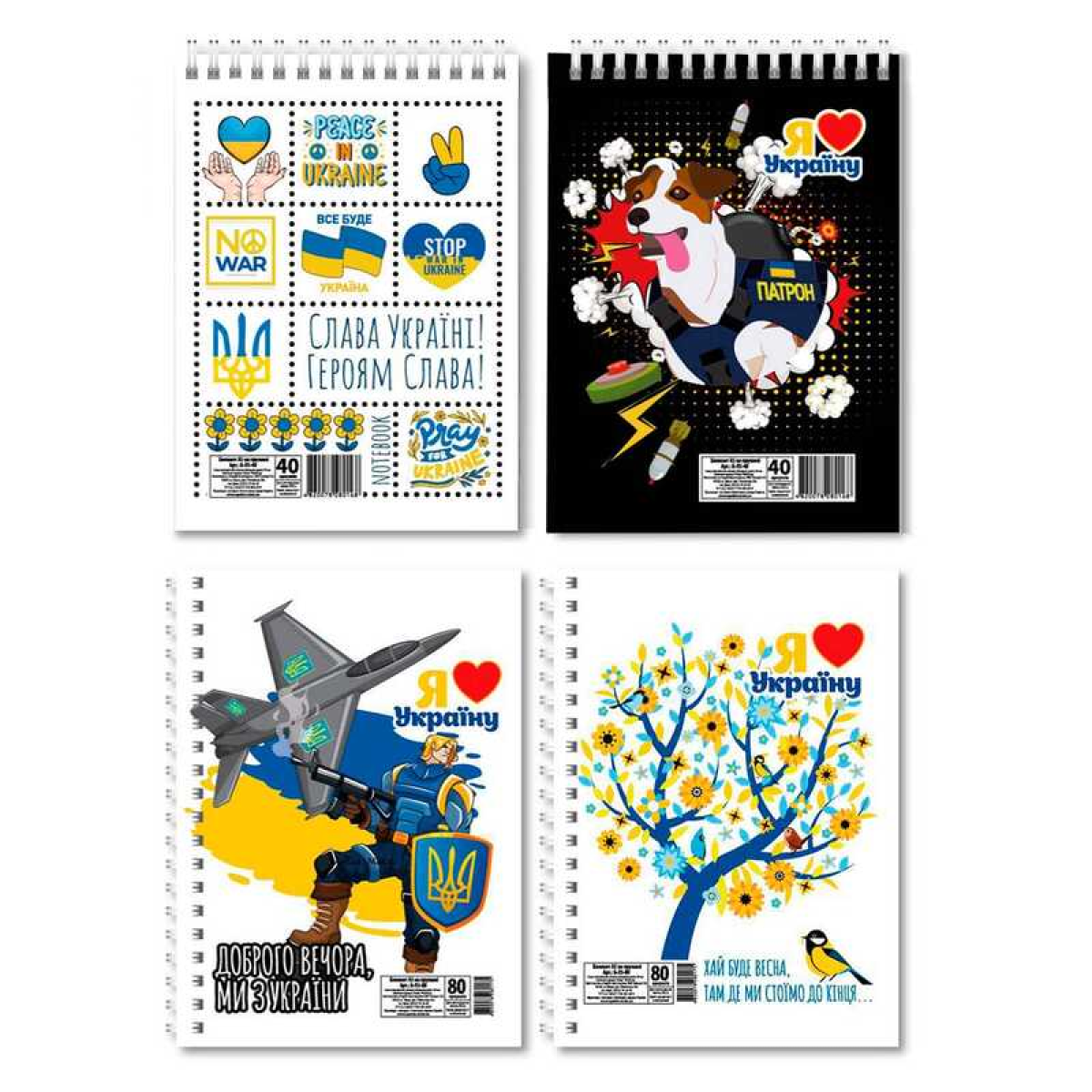 • гр Блокнот “Патріотичні“ Б-Л5-40/АП-1905 (20) А5, 40 арк., лаковка, 2 види, пружина збоку та пружина зверху ВИДАЄТЬСЯ МІКС ВИДІВ “Апельсин“