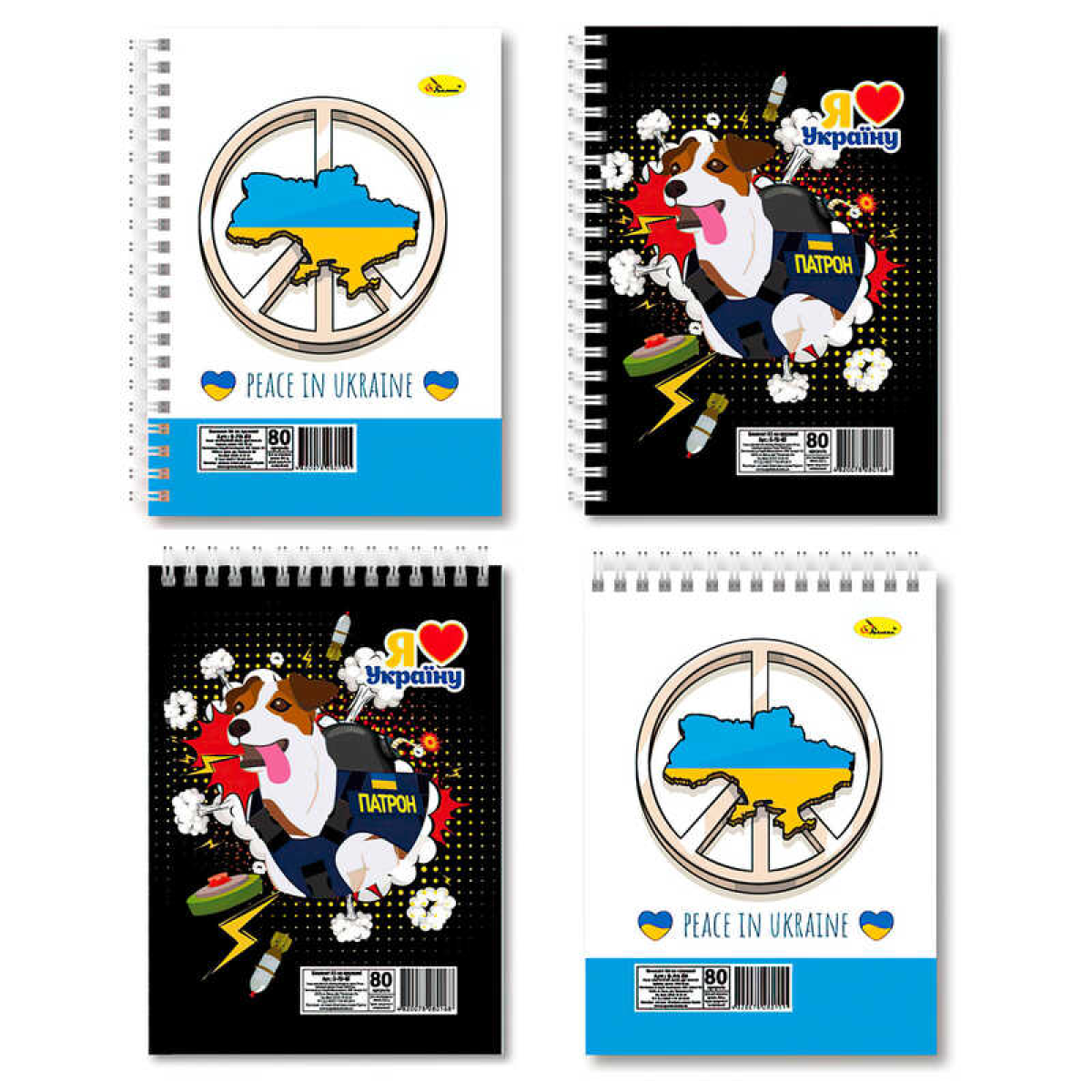 гр Блокнот Б-Л6-80 / АП-1904 “Патріотичні“ (10) А6, 80арк, лаковка, 2 види, пружина збоку та пружина зверху “Апельсин“ ВИДАЄТЬСЯ ТІЛЬКИ МІКС ВИДІВ