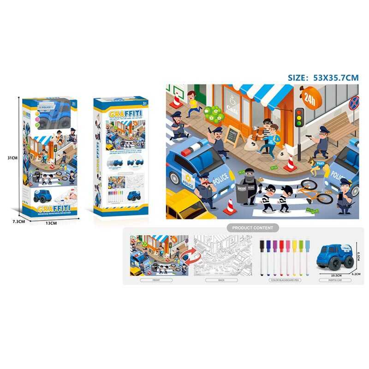 Багаторазова розмальовка 7077-125 (72/2) 8 маркерів, машинка з інерцією, в коробці