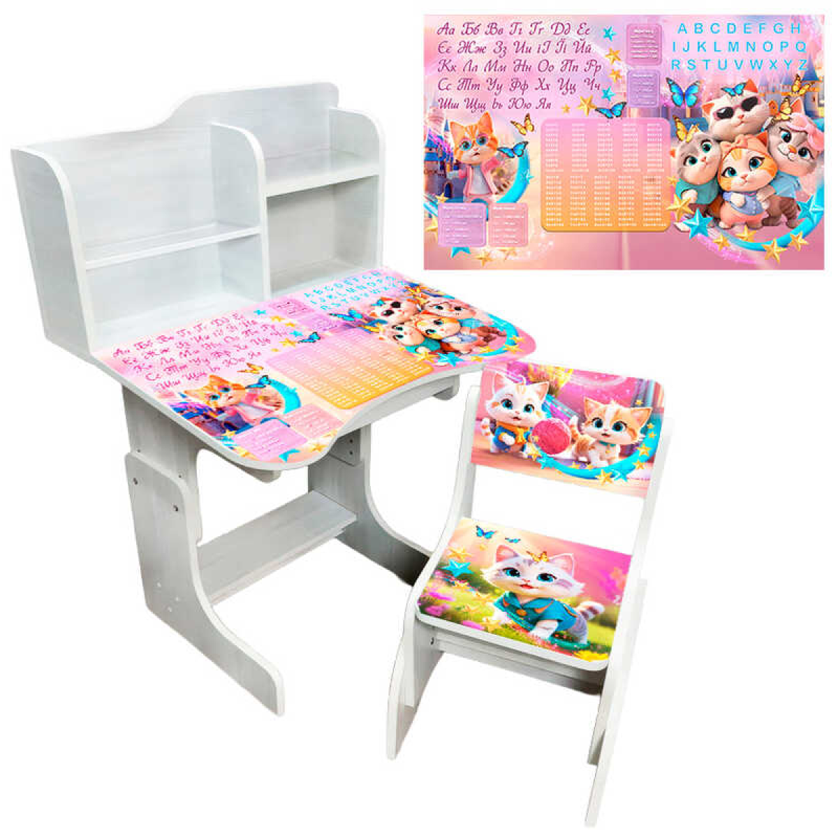 гр Парта шкільна “Котики“ ПШ 058 (1) ЛДСП, біле дерево, 69*45 см, + 1 стілець, з пеналом