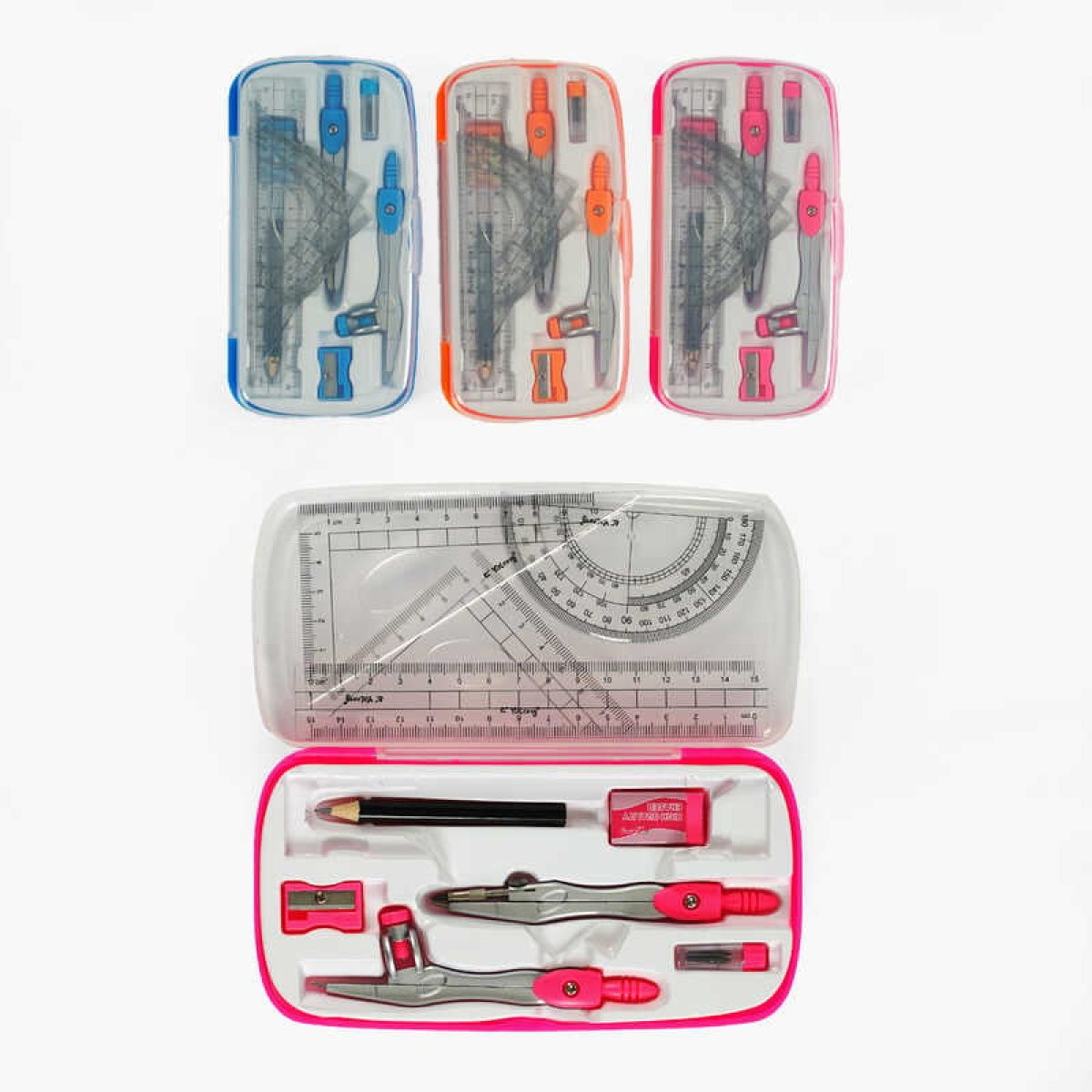 Набір для креслення С 62055 (96) 3 види, 2 циркулі, лінійка 15 см, 2 косинці, транспортир, гумка, стругачка, олівець, грифелі, у пакеті, ВИДАЄТЬСЯ ТІЛЬКИ МІКС ВИДІВ