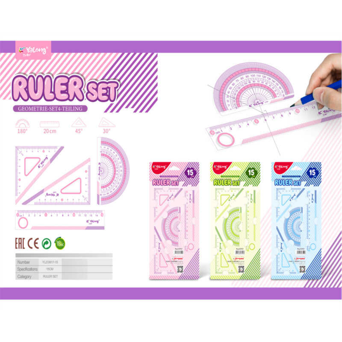 Набір лінійок C 72720 (288) ЦІНА ЗА 1 ШТУКУ, транспортир, лінійка на 15 см, 2 косинці, в пакеті