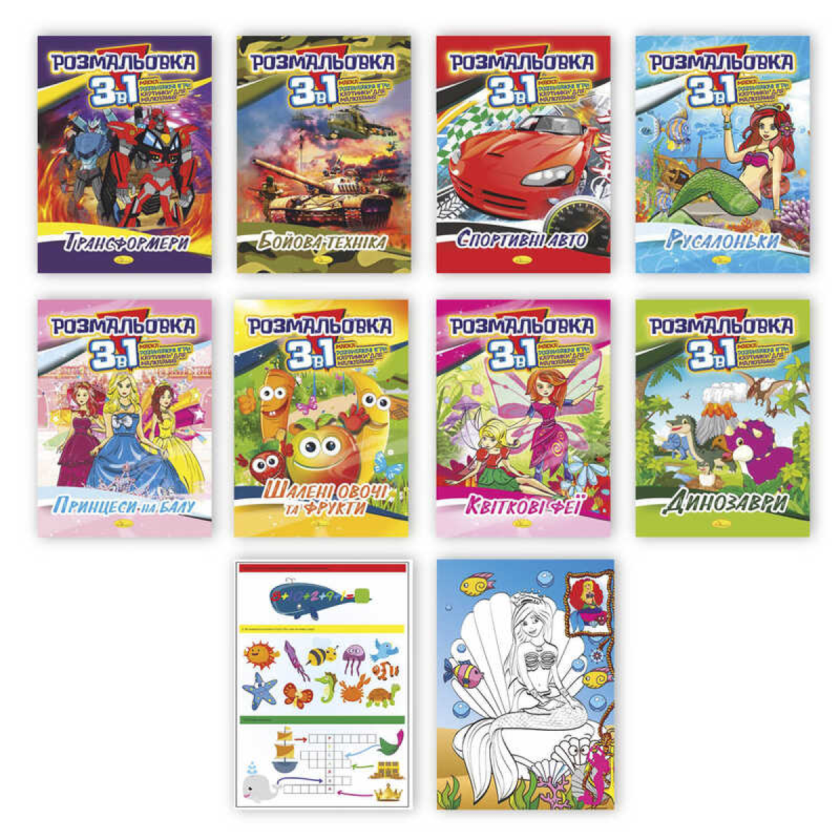 • гр Книжка-розмальовка “3 в 1“ ВИДАЄТЬСЯ МІКС ВИДІВ РМ-27-00 (24) 6 видів, 16 сторінок “Апельсин“
