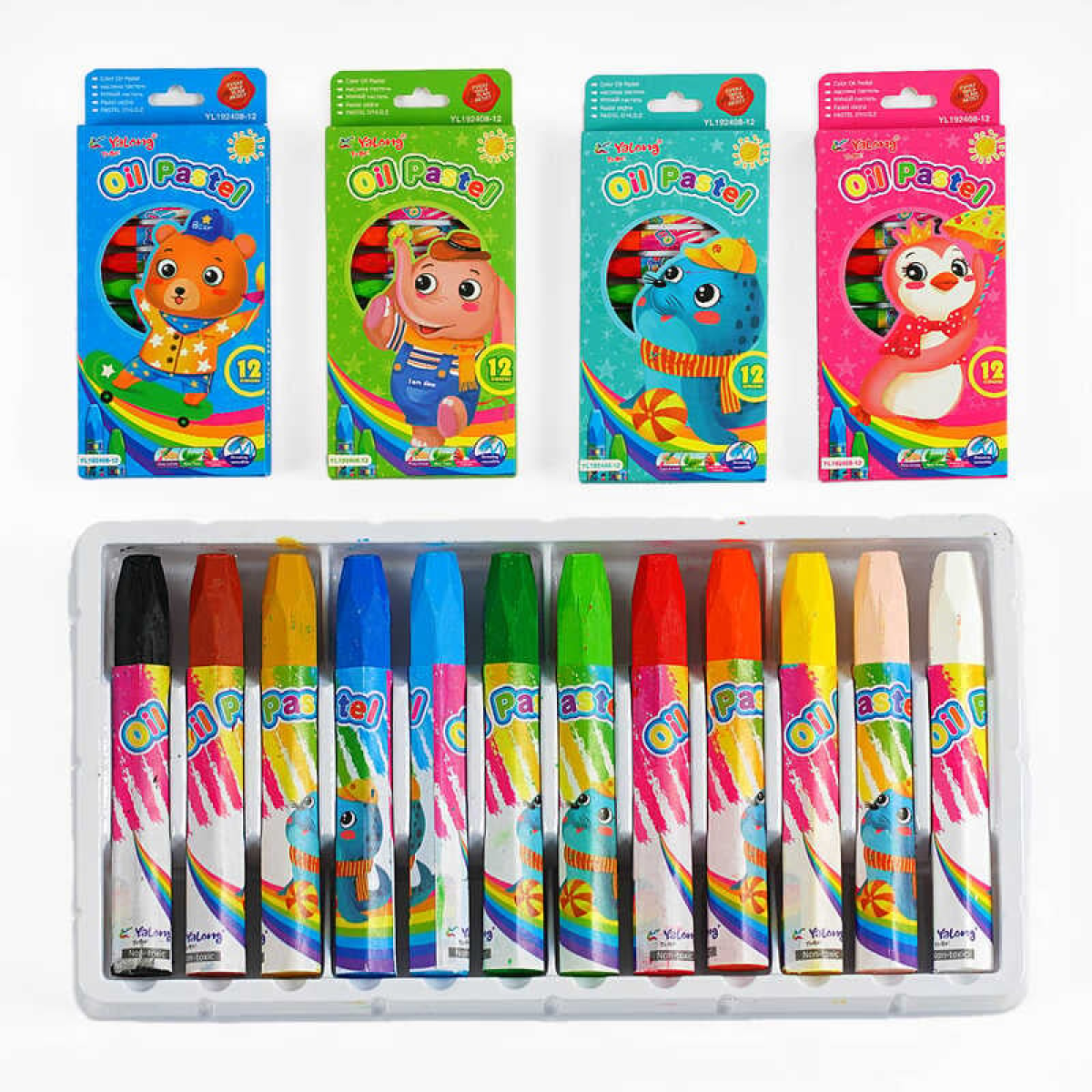 Олійні пастелі С 62115 (144) 4 види, 12 кольорів, в коробці, ВИДАЄТЬСЯ ТІЛЬКИ МІКС ВИДІВ