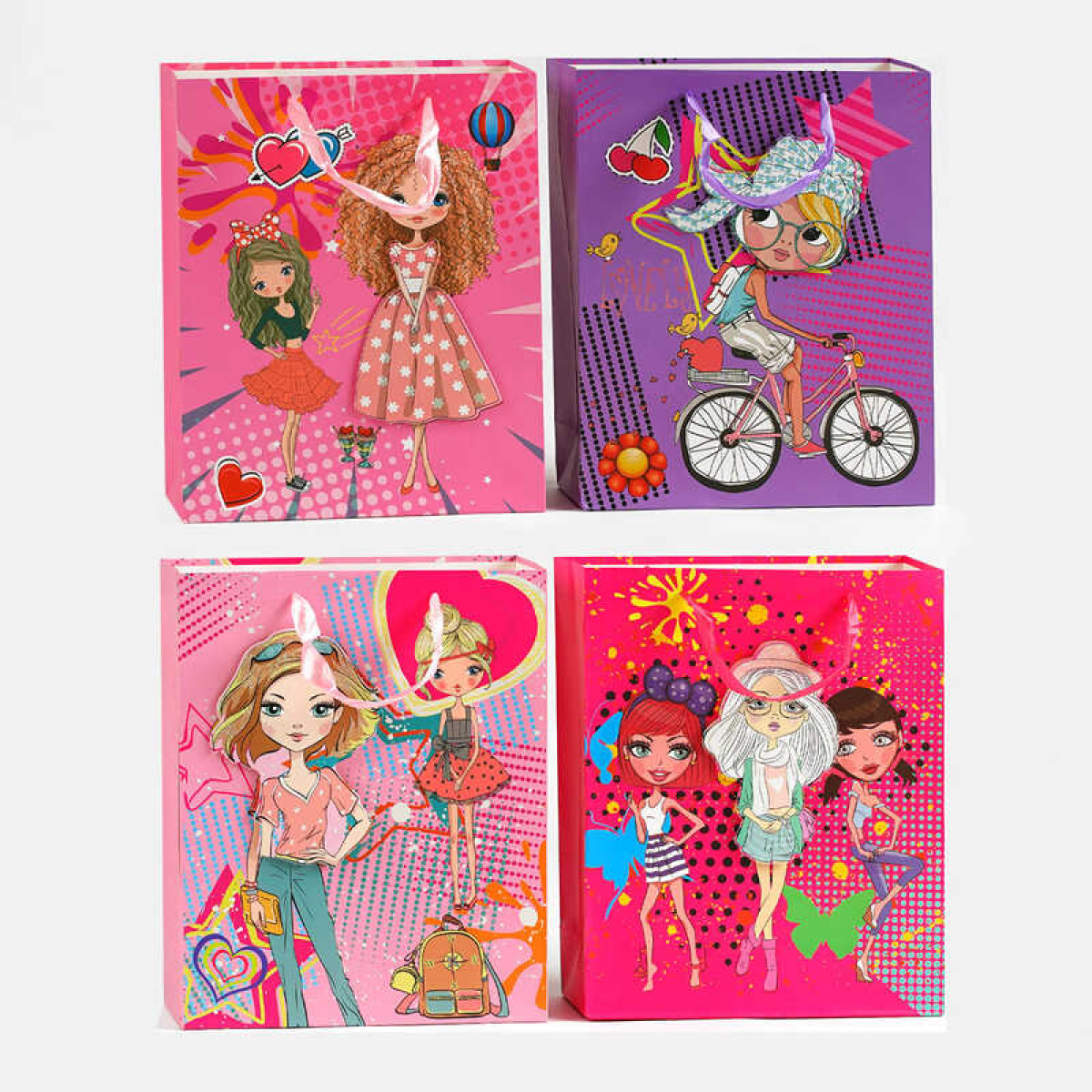 Пакет подарунковий С 57736 (300) 4 види, “Модниці“, СЕРЕДНІЙ, ВИДАЄТЬСЯ ТІЛЬКИ МІКС ВИДІВ
