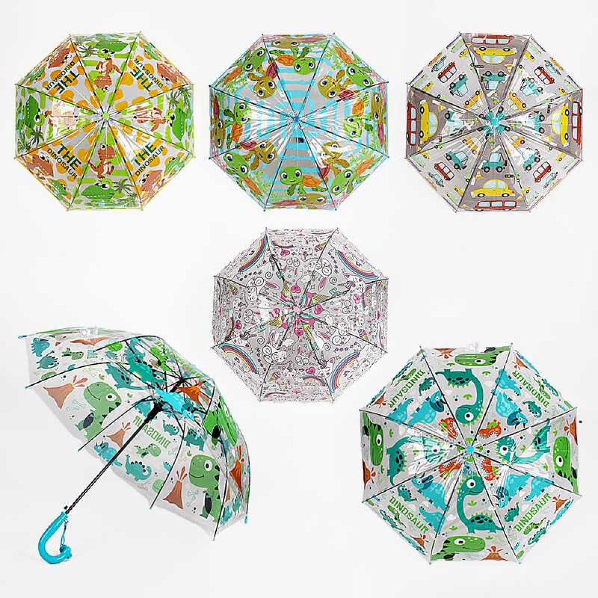 Парасолька С 66360 (60) 6 видів, прозорий купол, d=74 см, свисток, ВИДАЄТЬСЯ ТІЛЬКИ МІКС ВИДІВ