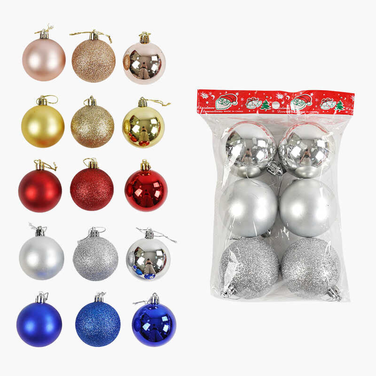 Новорічні прикраси C 67736 (200) 5 видів, кульки, 6 штук, D=6 см, у пакет, ВИДАЄТЬСЯ МІКС ВИДІВ