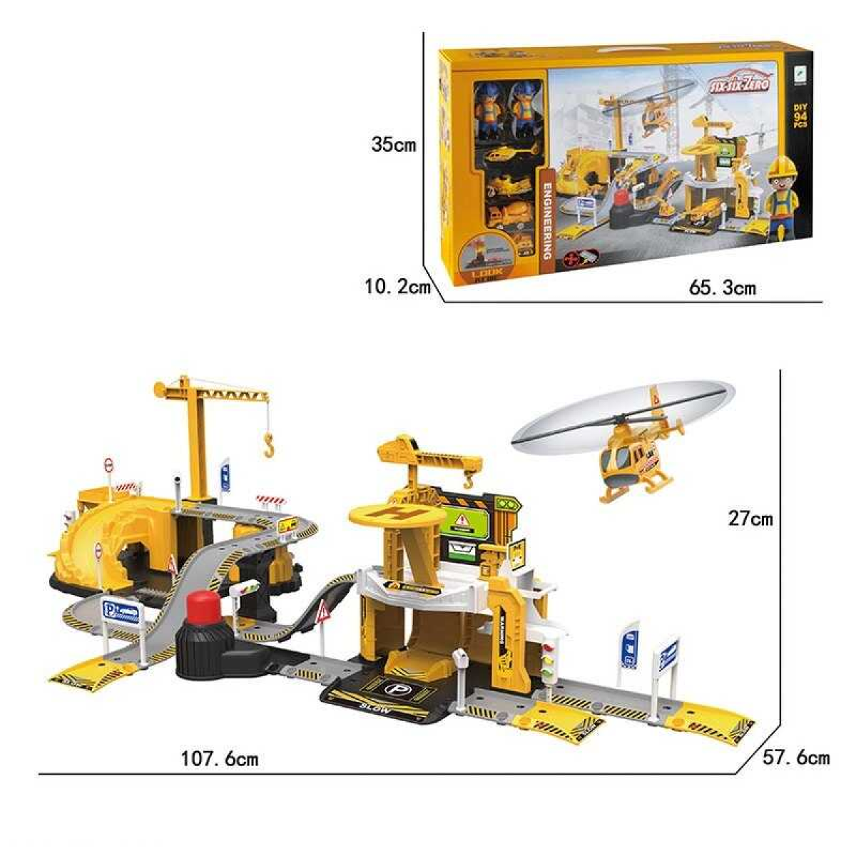 Трек 660 A-198 (6) 93 деталі, запускач для машинок, металопластикові машинки, фігурки будівельників, наліпки в коробці
